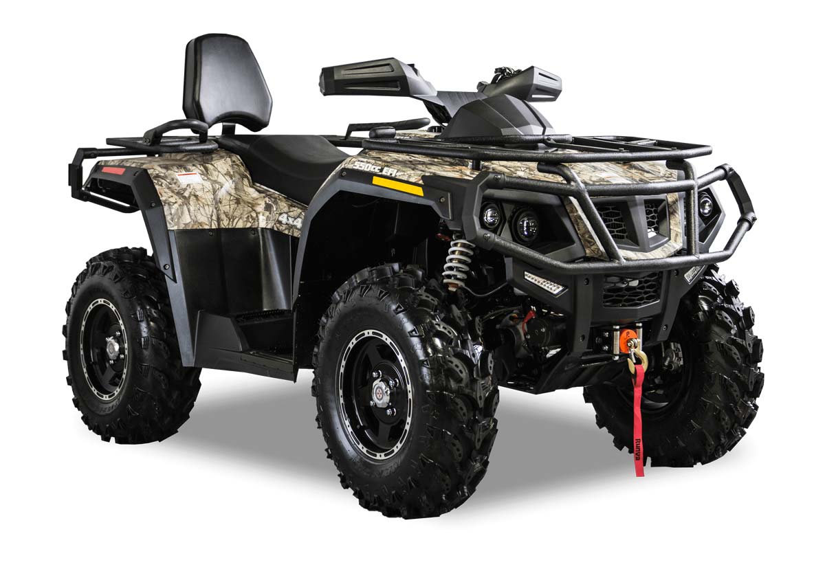 4 ütemű OHV 546 cm3-es egyhengeres EFI motorral és összkerékhajtással felszerelve, hogy a legkeményebb terepen is megállja a helyét. A kettős A-karos nitrogénnel rásegített lengéscsillapítók sima utazást biztosítanak, az első és hátsó csomagtatók és az 1134 kg-os teherbírású csörlő pedig tökéletes kiegészítője lesz minden terepjáró kalandnak.